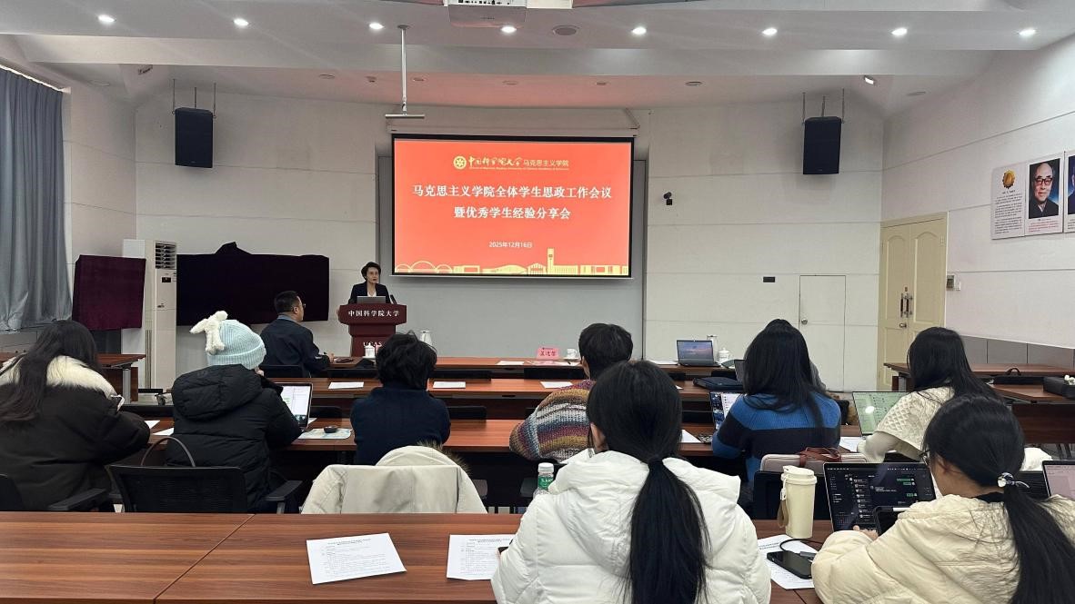 12月16日下午,中国科学院大学马克思主义学院在玉泉路礼堂报告厅召开学生思政工作会议暨优秀学生经验分享会。学院党总支书记谭红军、执行院长盖逸馨、副书记贾宝余及马院全体学生共同参会,贾宝余主持会议。